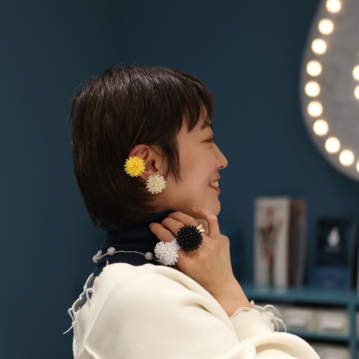 大きすぎず小さすぎずほどよいボリューム感で、顔まわりを明るく華やかに演出してくれます。