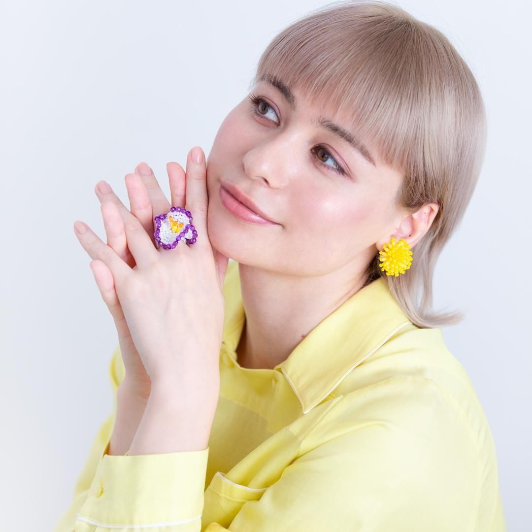ぷくっとした可愛らしいカタチとカラフルな色づかいがとっても華やかなイヤリング。