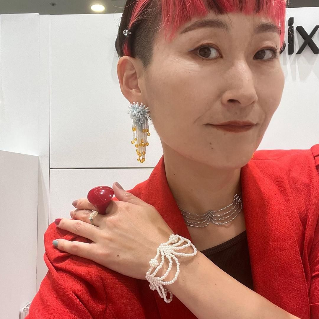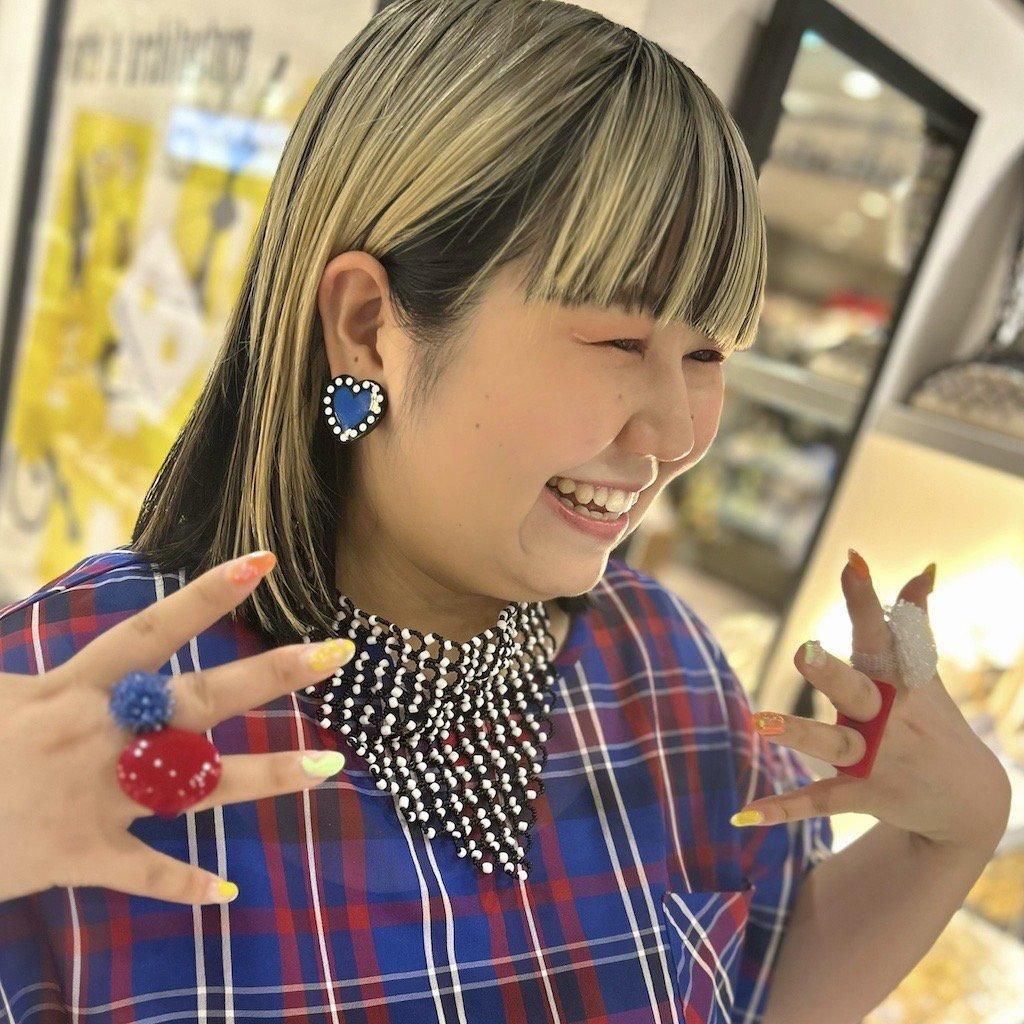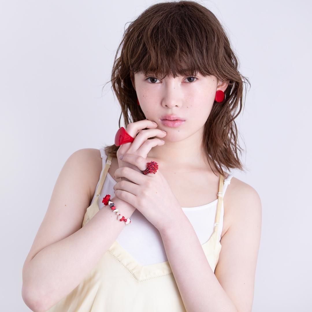 ころんとしたフォルム、美しい発色とツヤが特徴のアクリルレジン製リング。