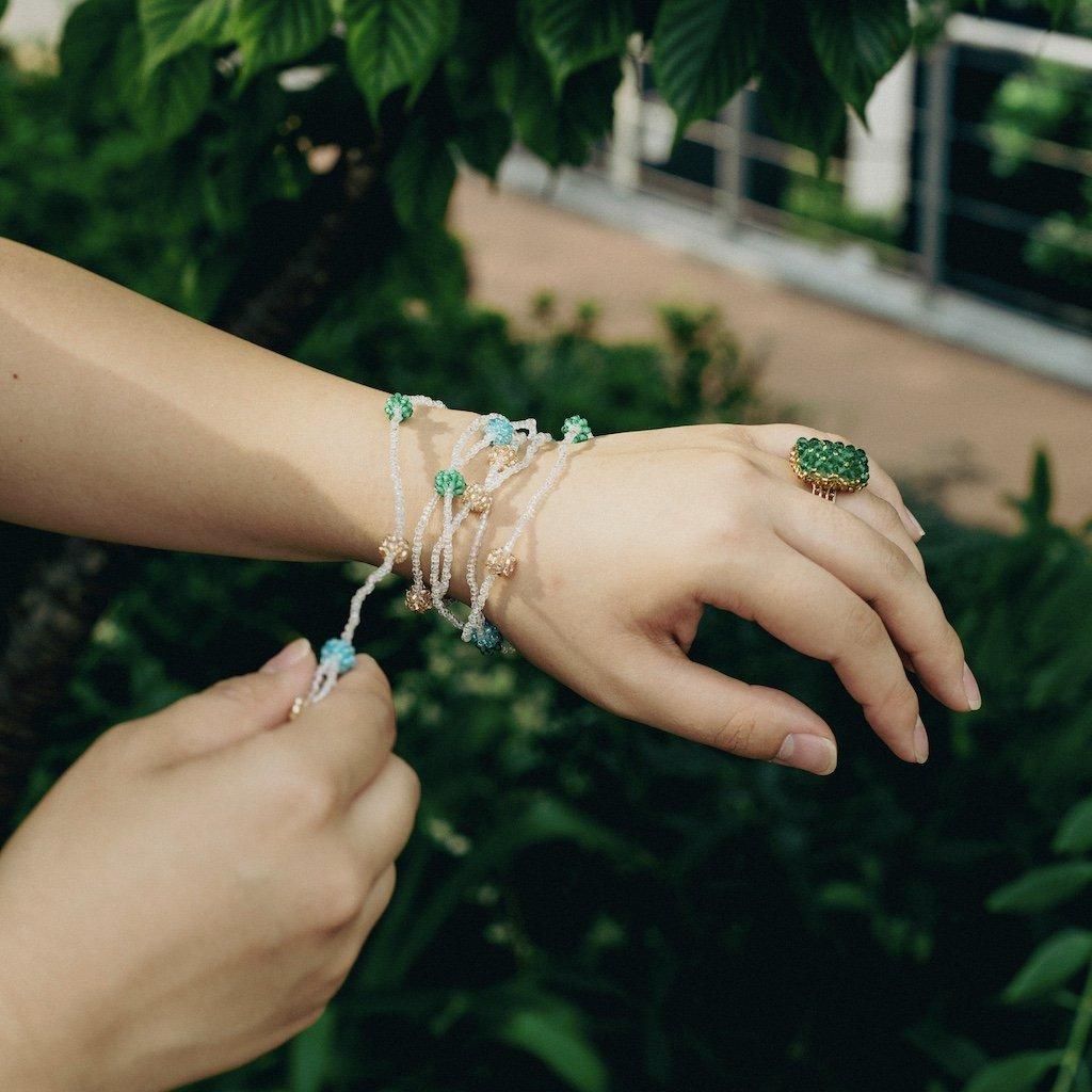 色とりどりのビーズが輝き、身につけるだけで気分が上がります。
