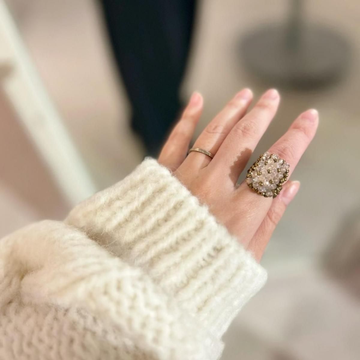 古典的なジュエリーをモードに落とし込んだリング。
