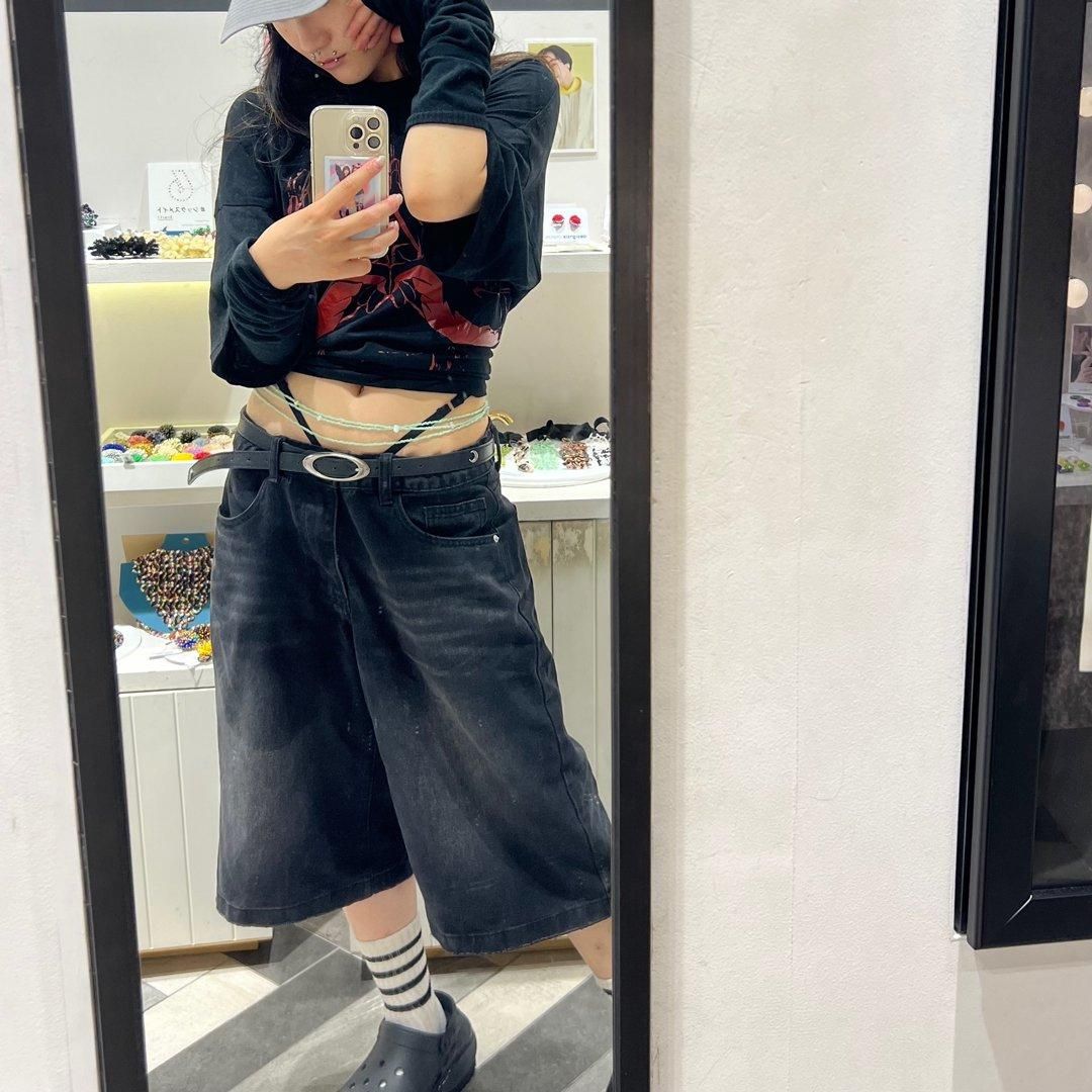 ウエストまわりにアクセントをつけて、個性的かつモードなスタイリングを完成させて。