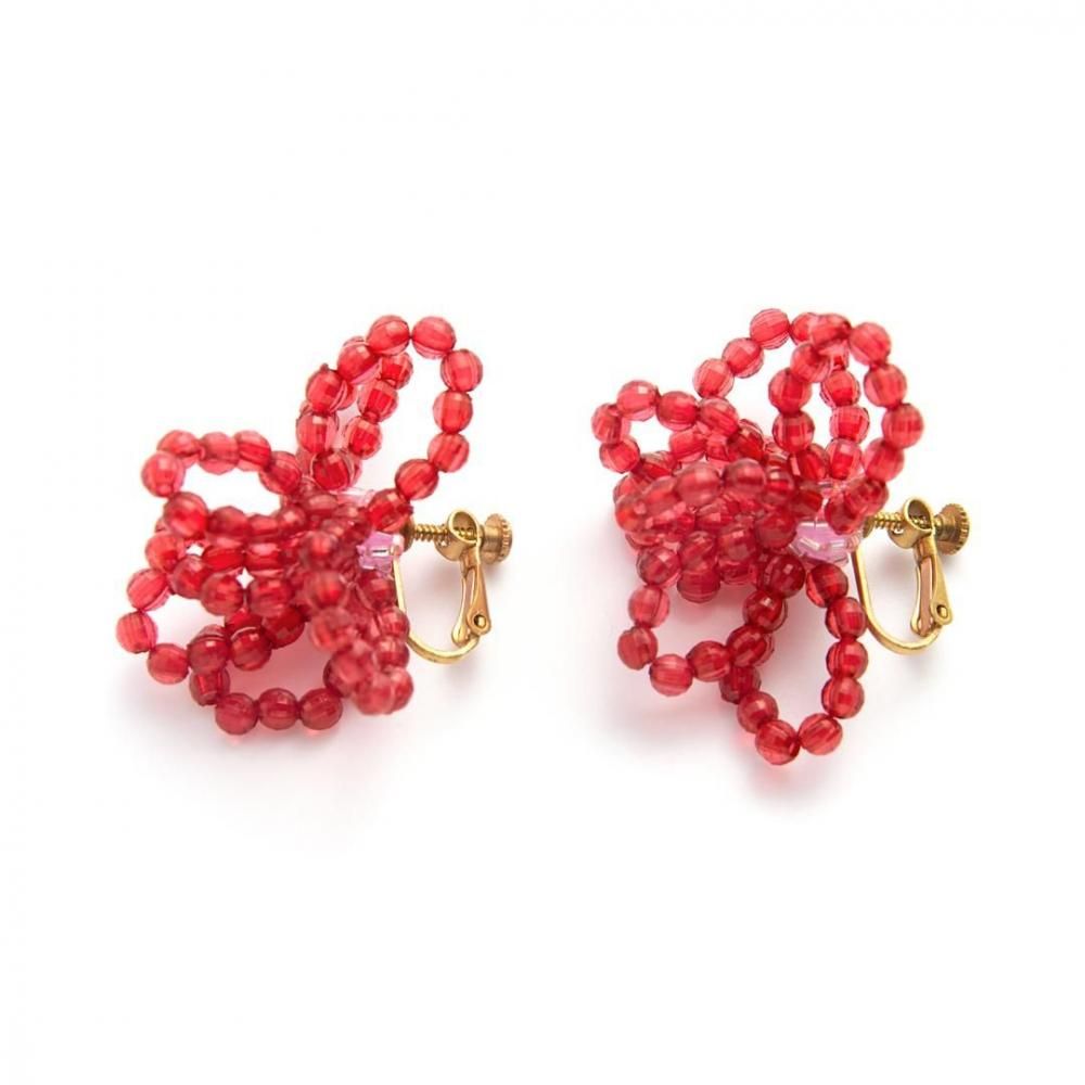 透け感のあるビーズでできた花びらが、ふんわりと広がるフラワーモチーフイヤリング。