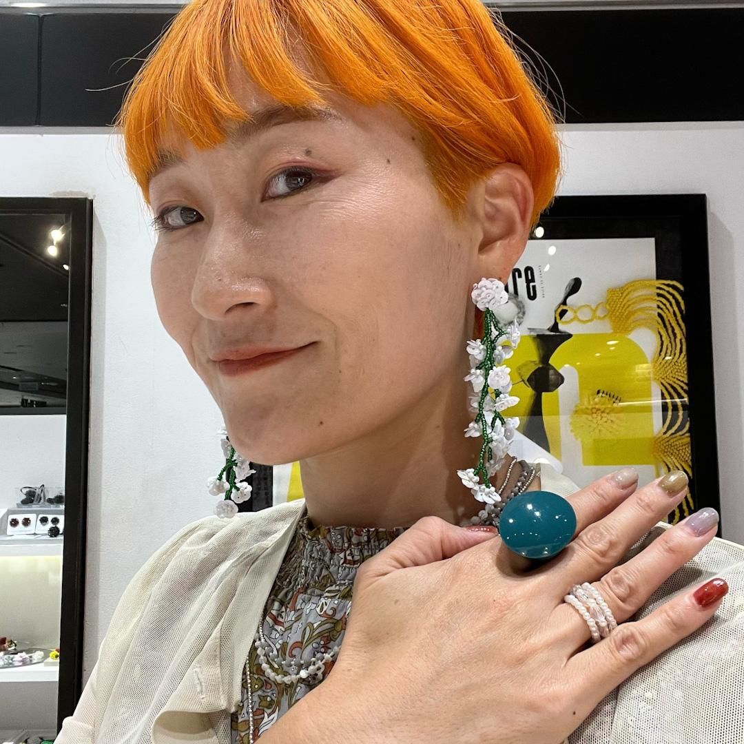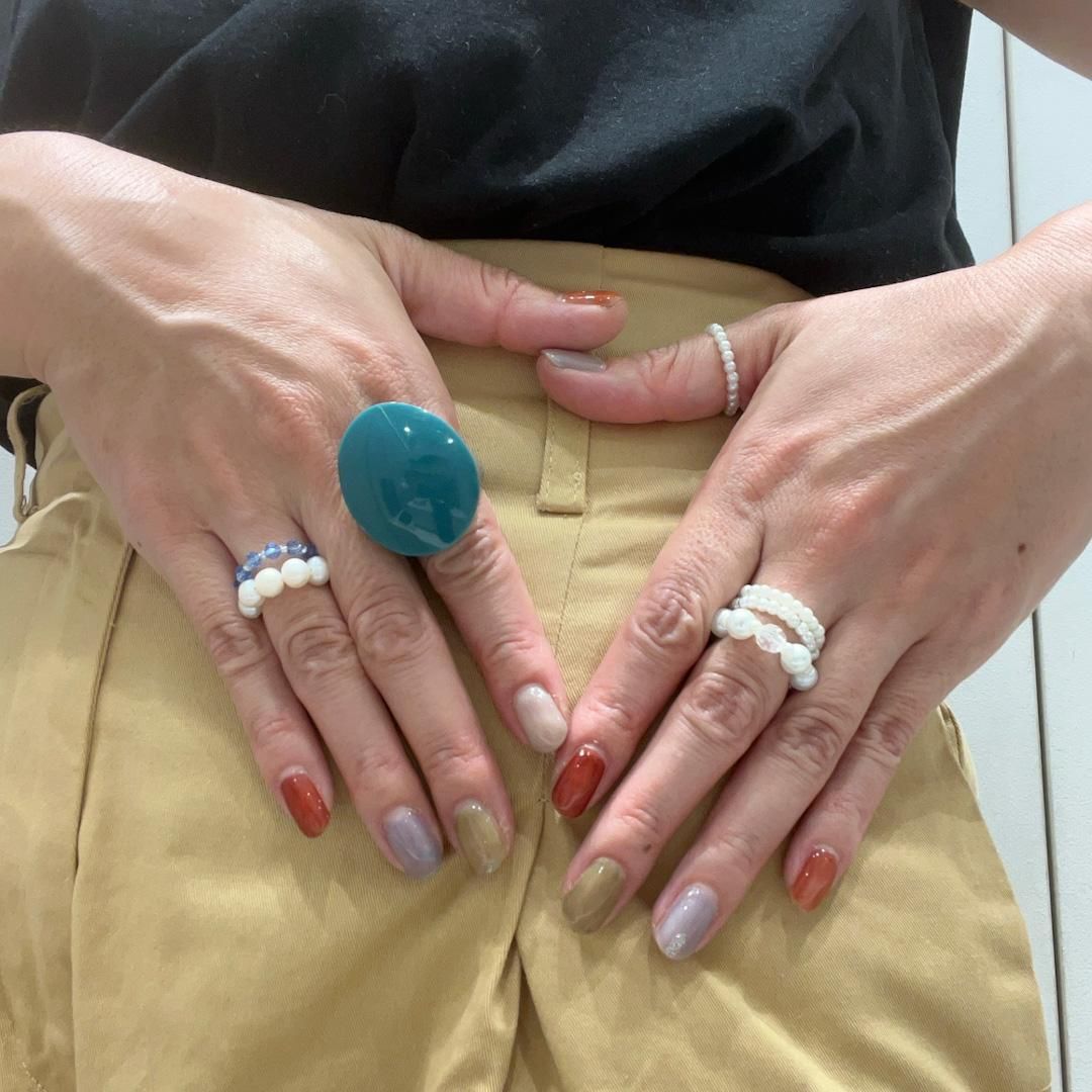 ころんとしたフォルム、美しい発色とツヤが特徴のアクリルレジン製リング。