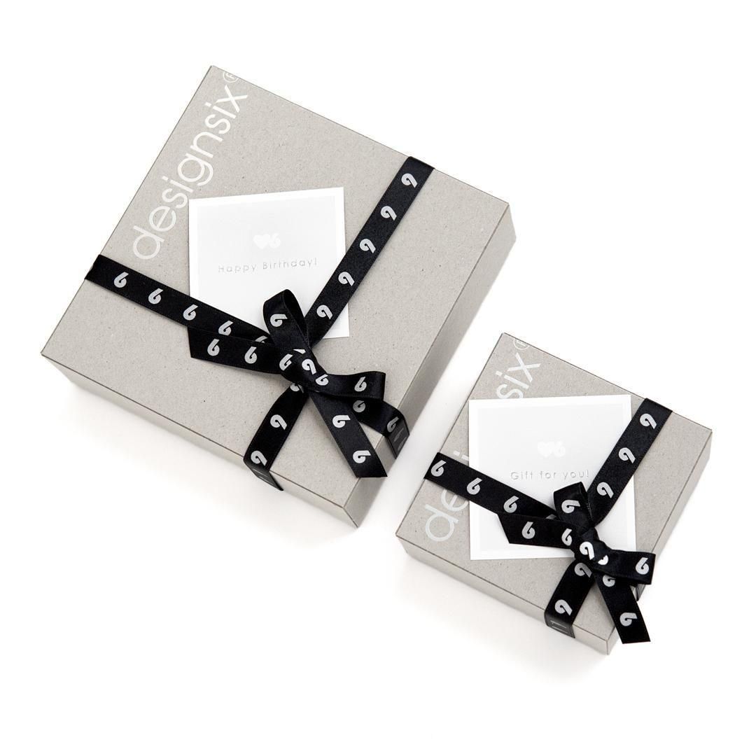 ブランドロゴが箔押しされたソリッドなデザインのギフトボックス。