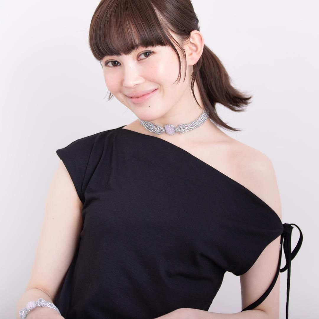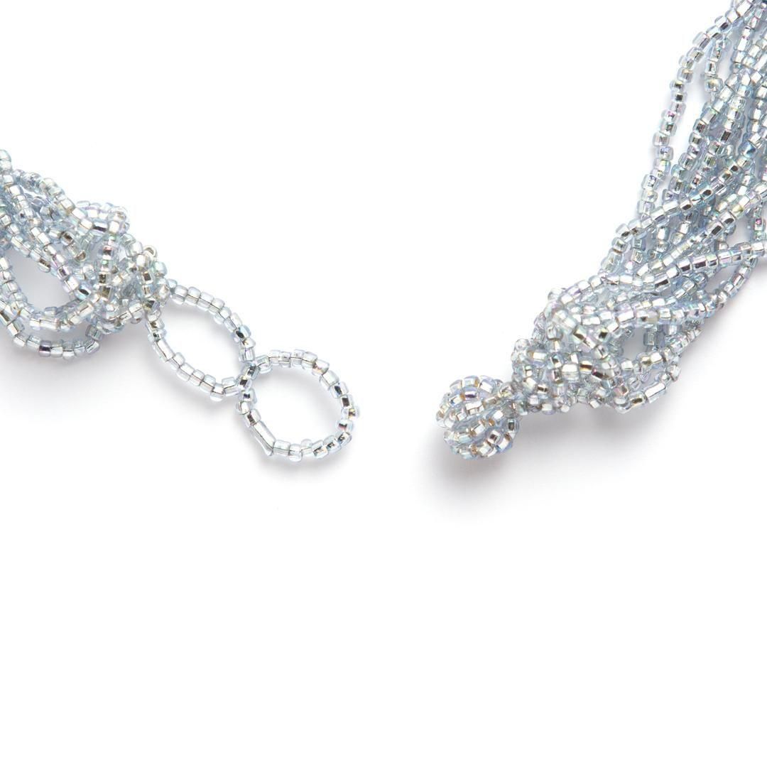 カットビーズが美しく輝き、デコルテを明るく華やかに印象づけてくれます。