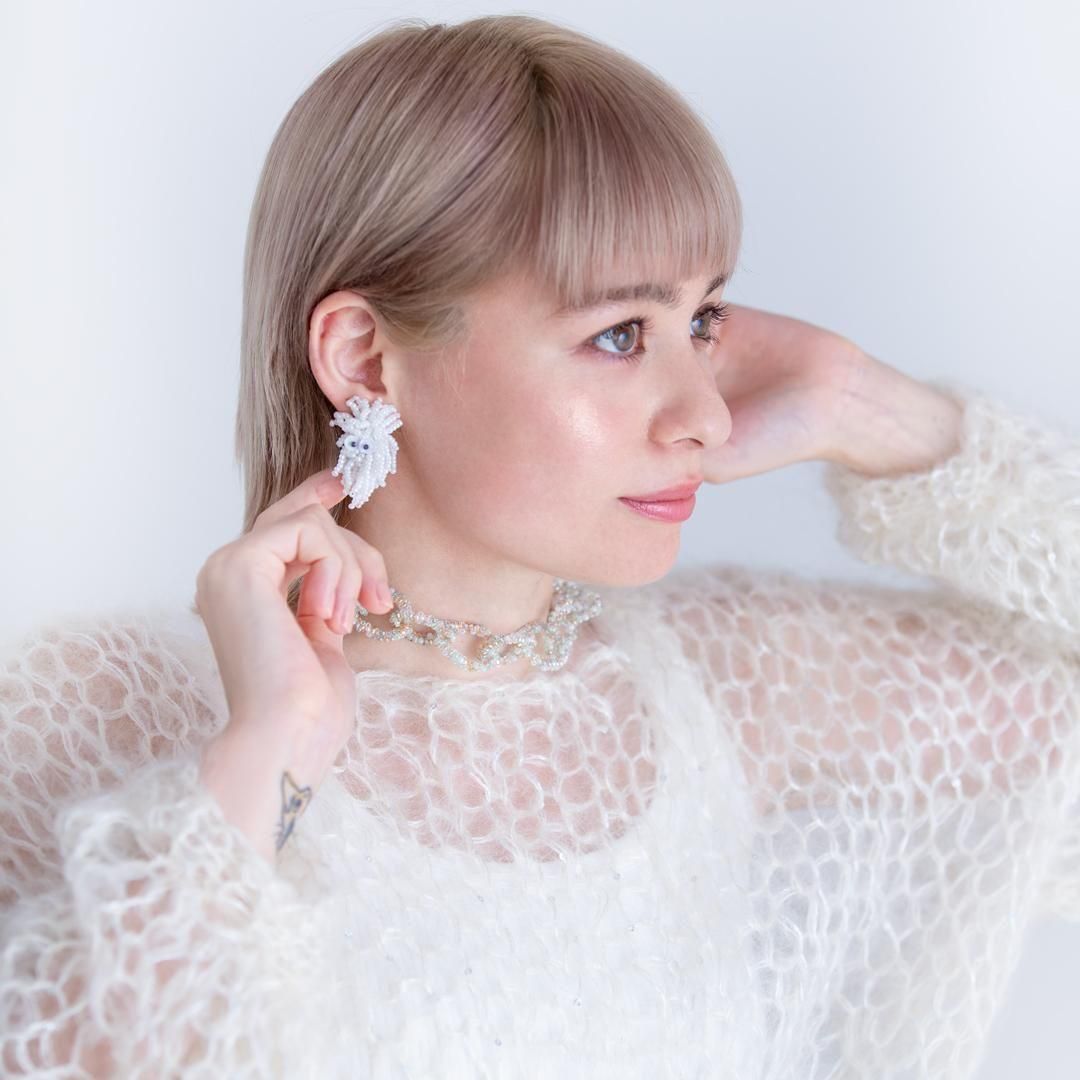 フサフサのモンスターが耳元で揺れる、遊び心のある楽しいピアスです。