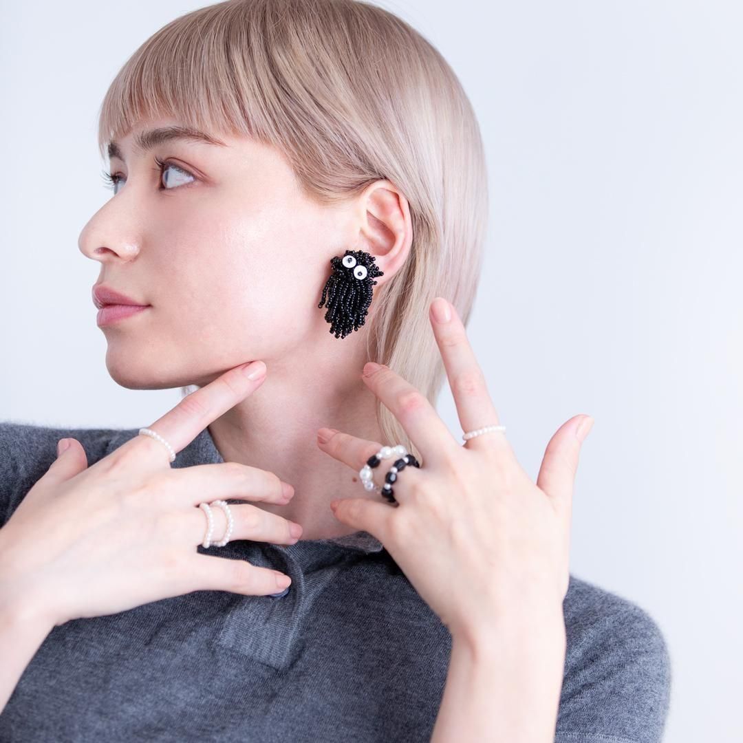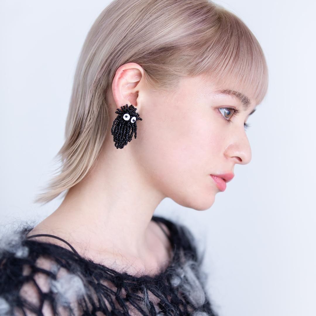 フサフサのモンスターが耳元で揺れる、遊び心のある楽しいイヤリングです。