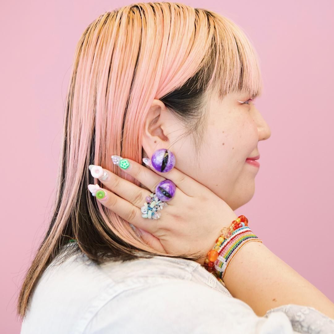 ジャングルに生息する生き物の目をイメージしたピアス。