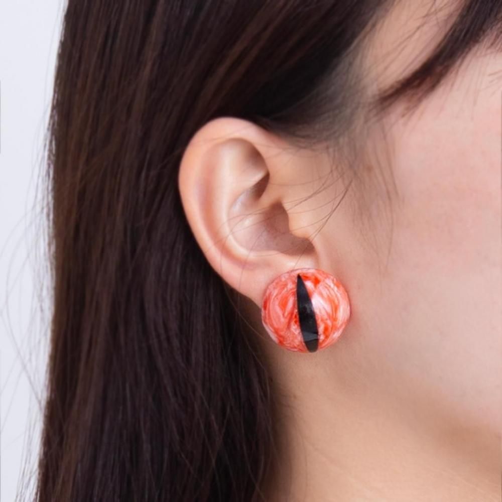 ジャングルに生息する生き物の目をイメージしたピアス。