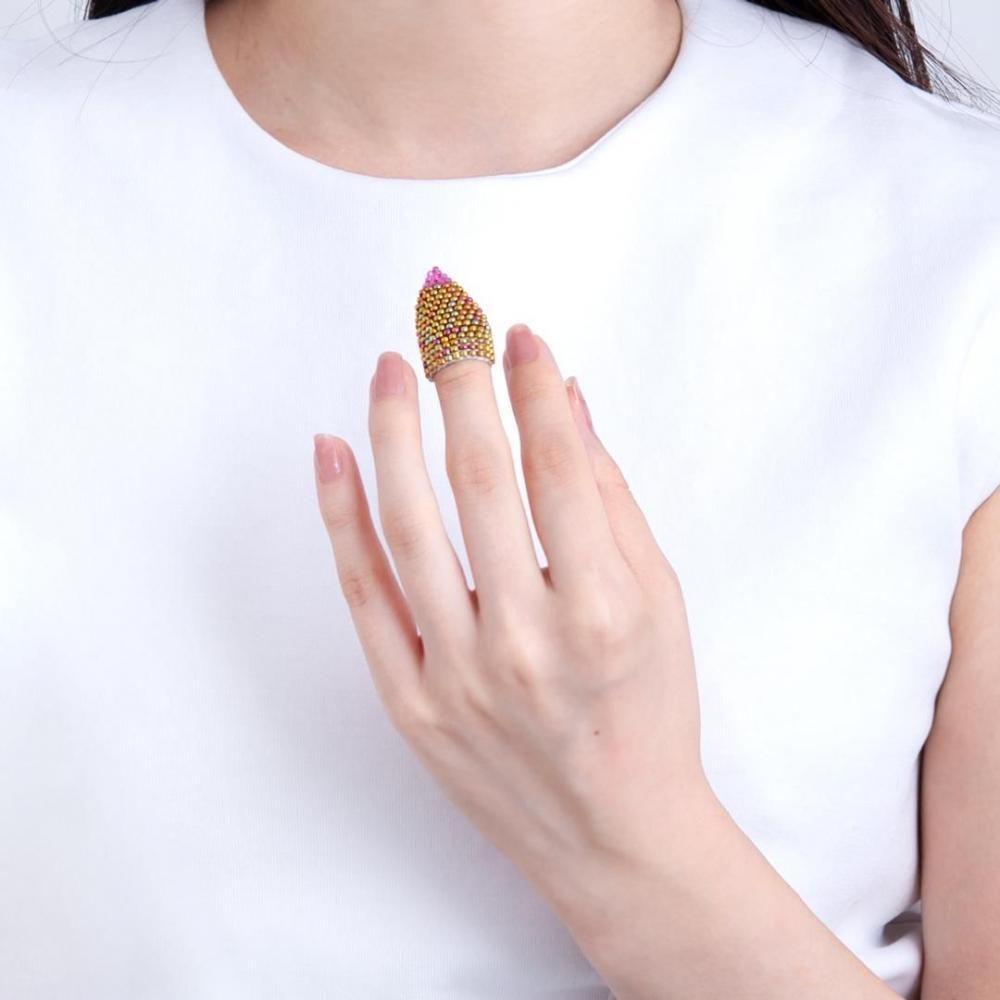 指先につけると爪のように見えるネイルリング。