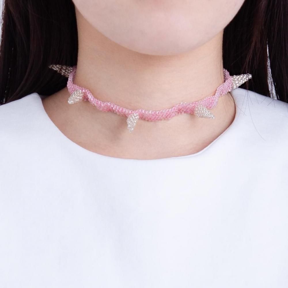 ビーズのトゲが生えた、カラフルチョーカー。