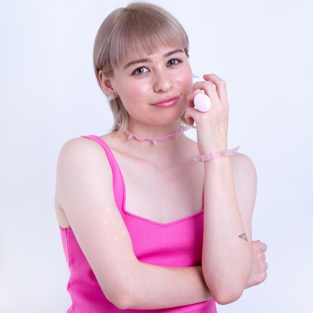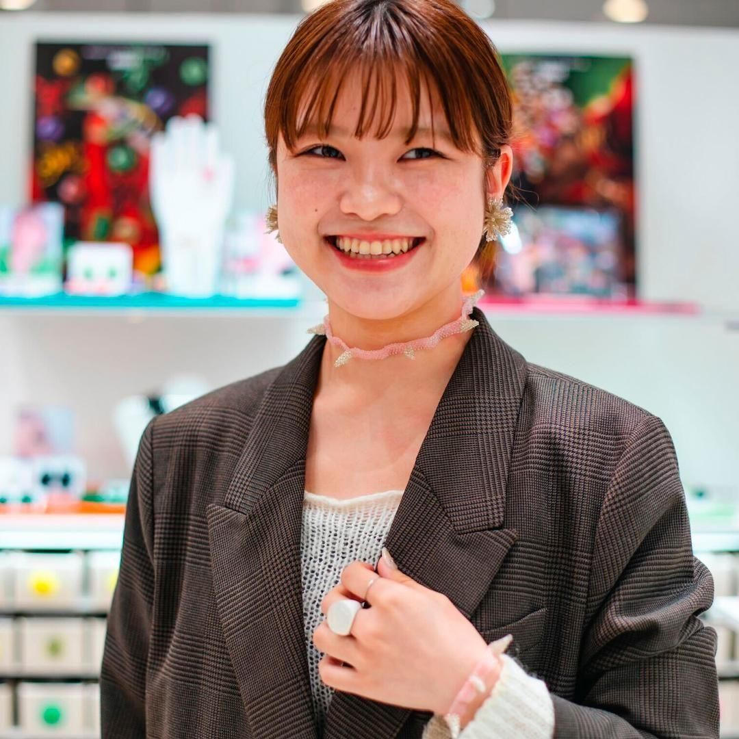 パンクなデザインをビーズで表現することで、ポップでファッショナブルな印象です。