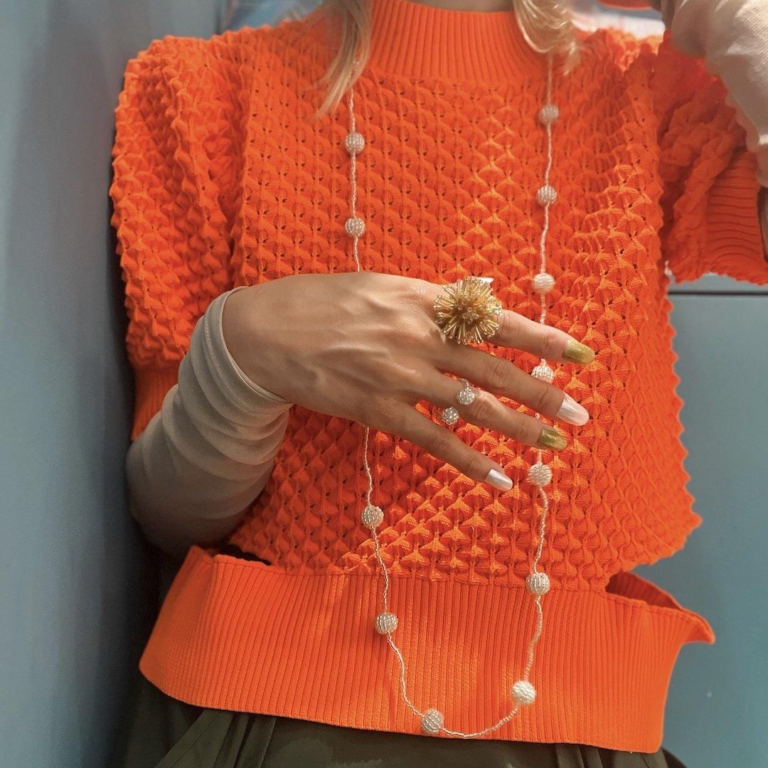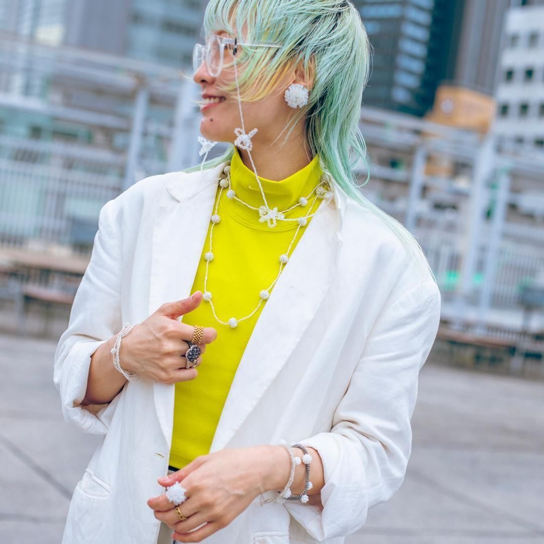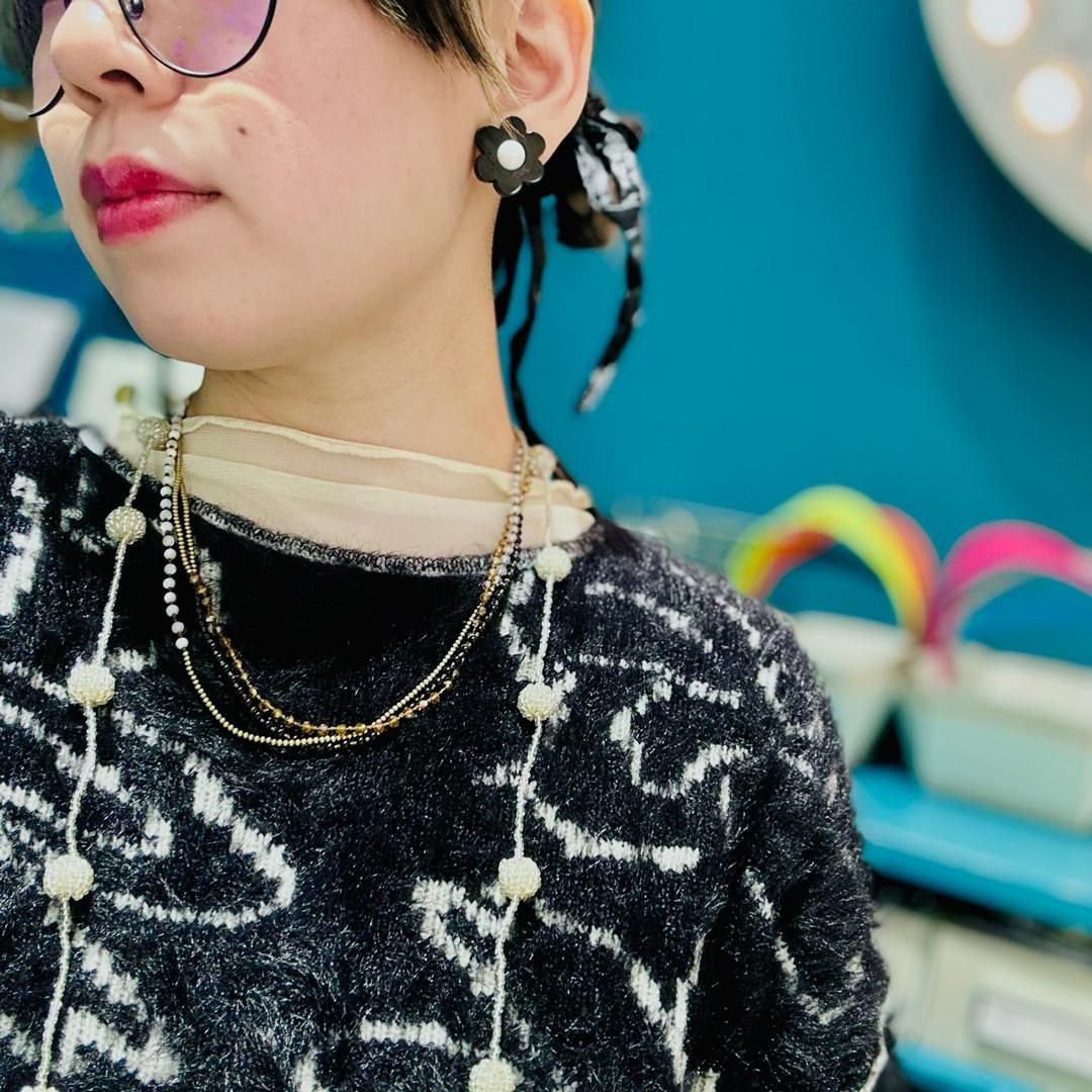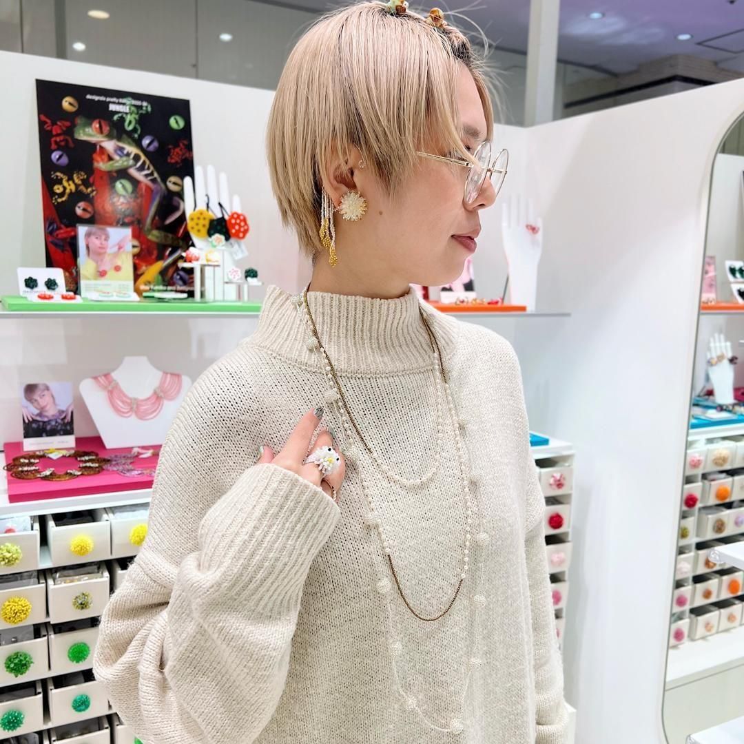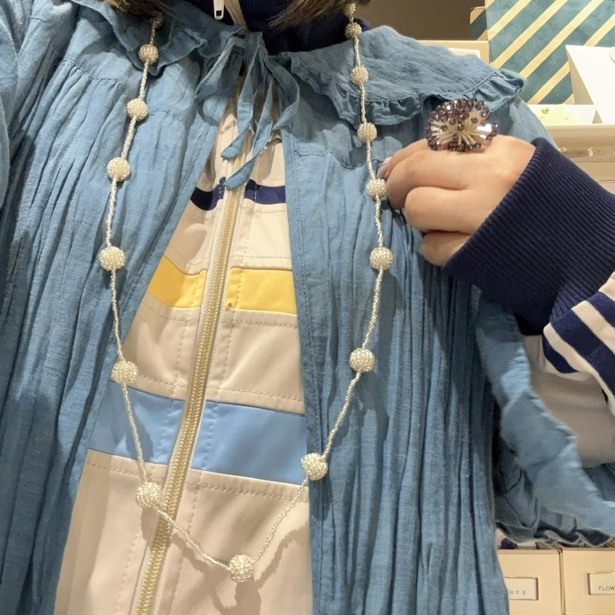 好きなところで留めることができるので2連、3連のほか、ウエストマークにも使える便利なネックレス。カラーバリエーション豊富な上とても軽いので、好きな色を組み合わせた重ねづけもおすすめ。