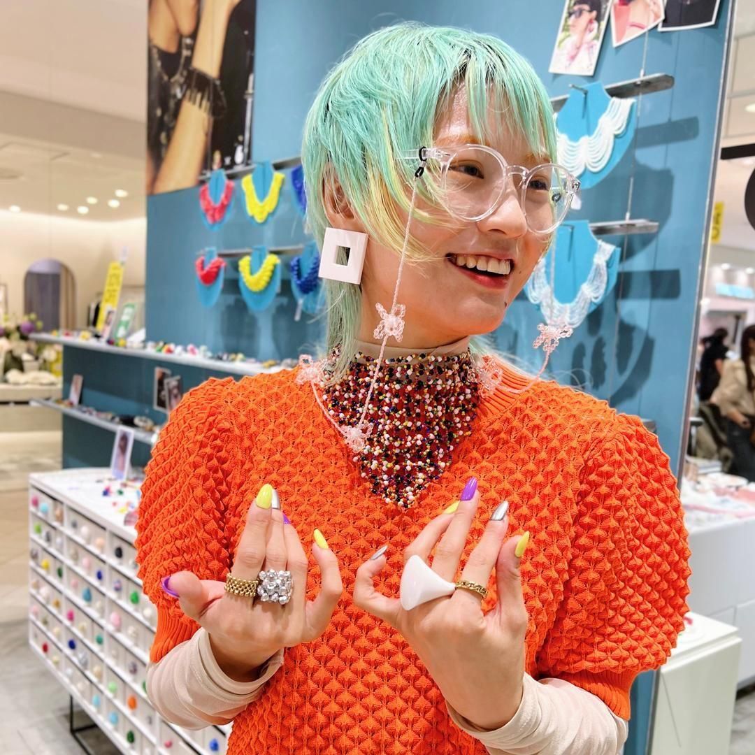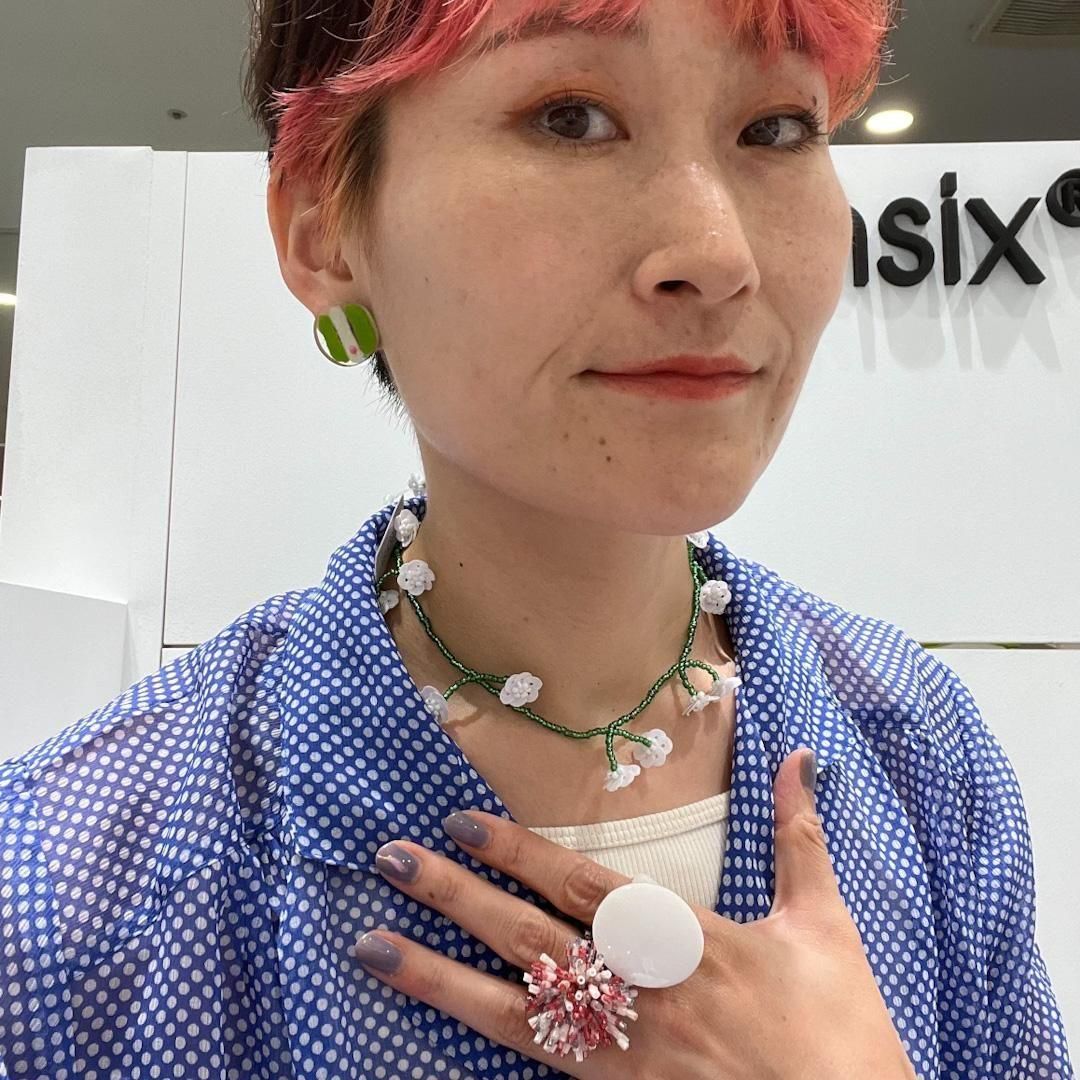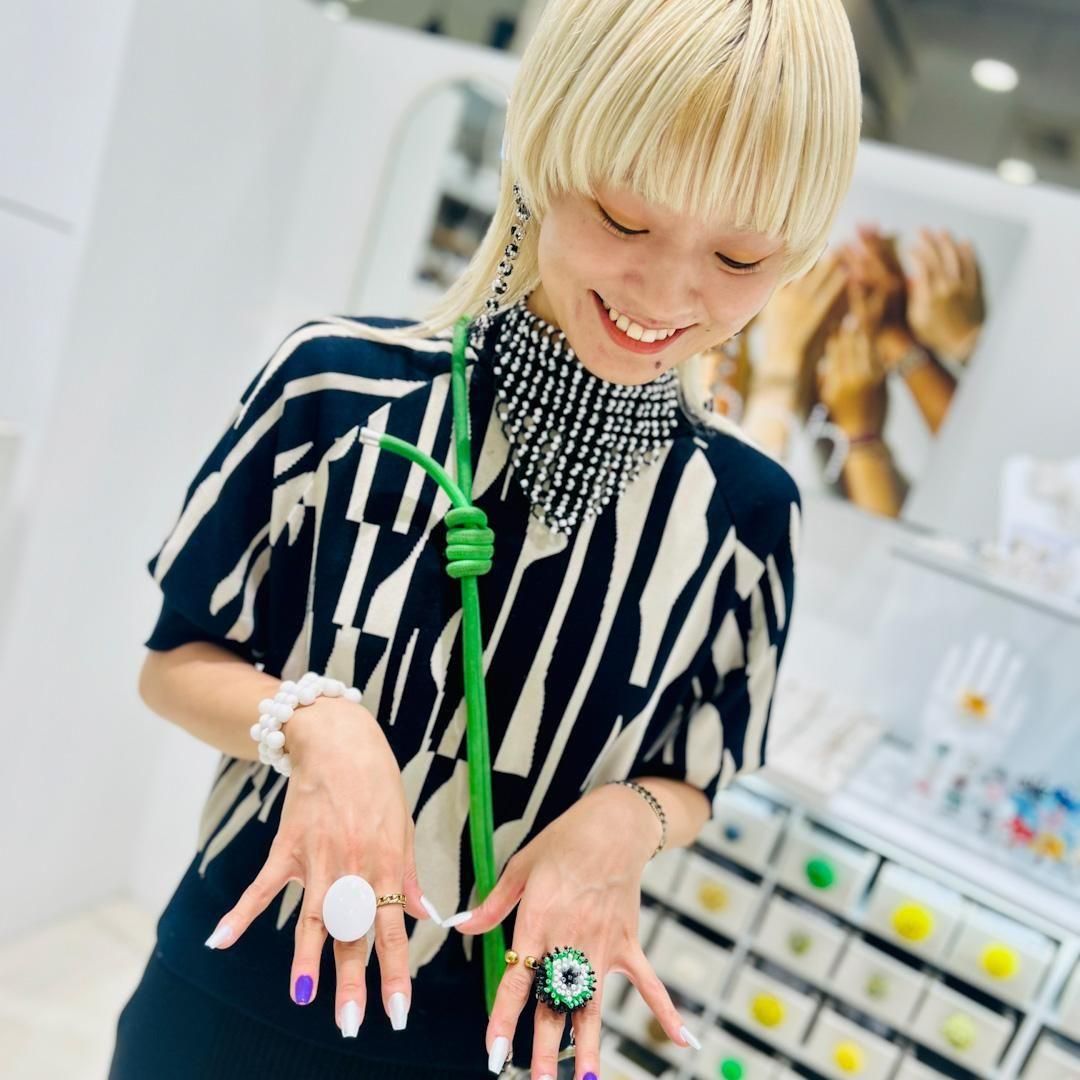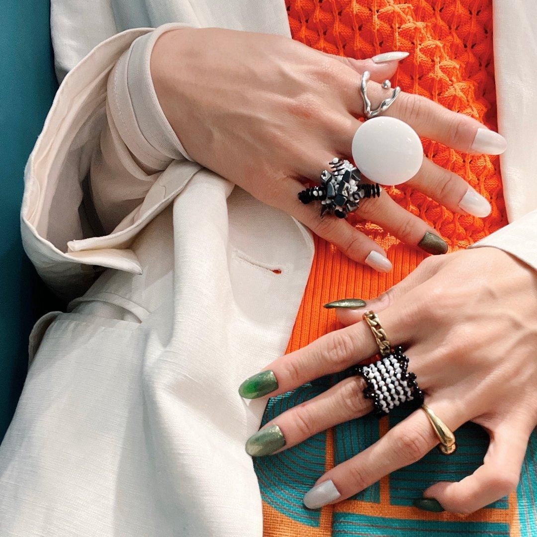 ころんとしたフォルム、美しい発色とツヤが特徴のアクリルレジン製リング。