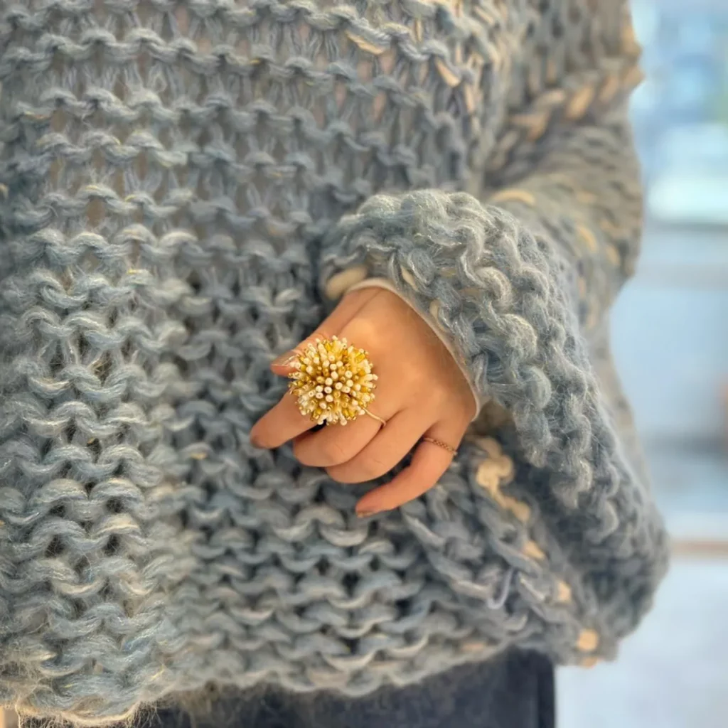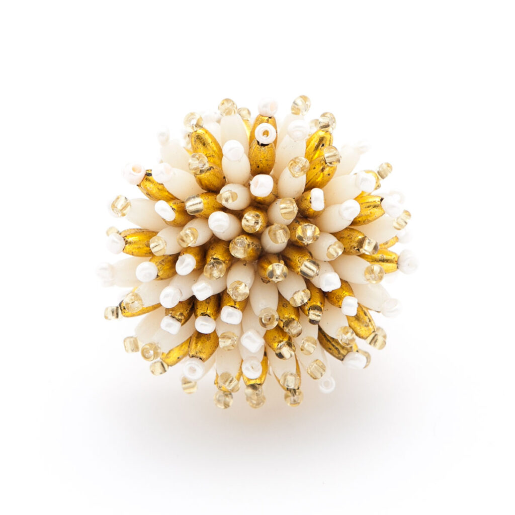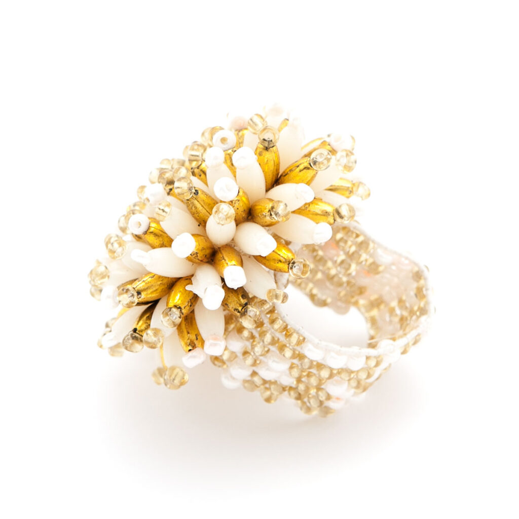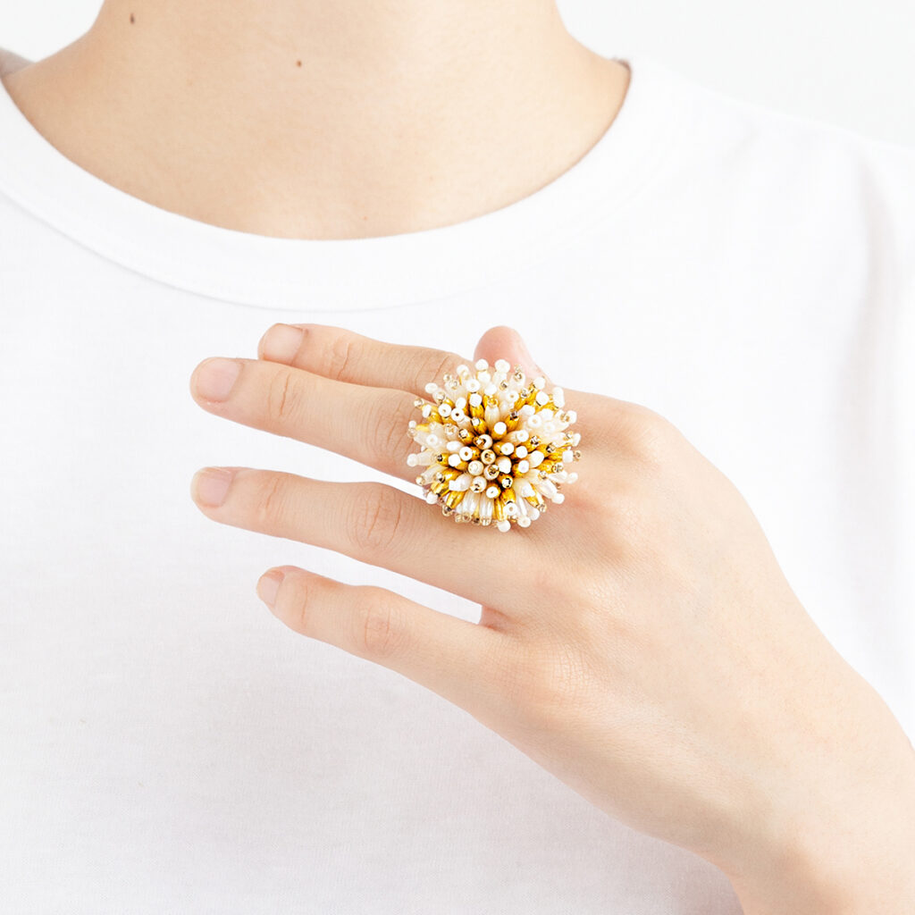 こちらの「NOVA RING MIX IVORY GOLD」は、肌馴染みのよいアイボリーと、きらめくゴールドの塗装加工を施したライスビーズをミックスした人気カラーです。