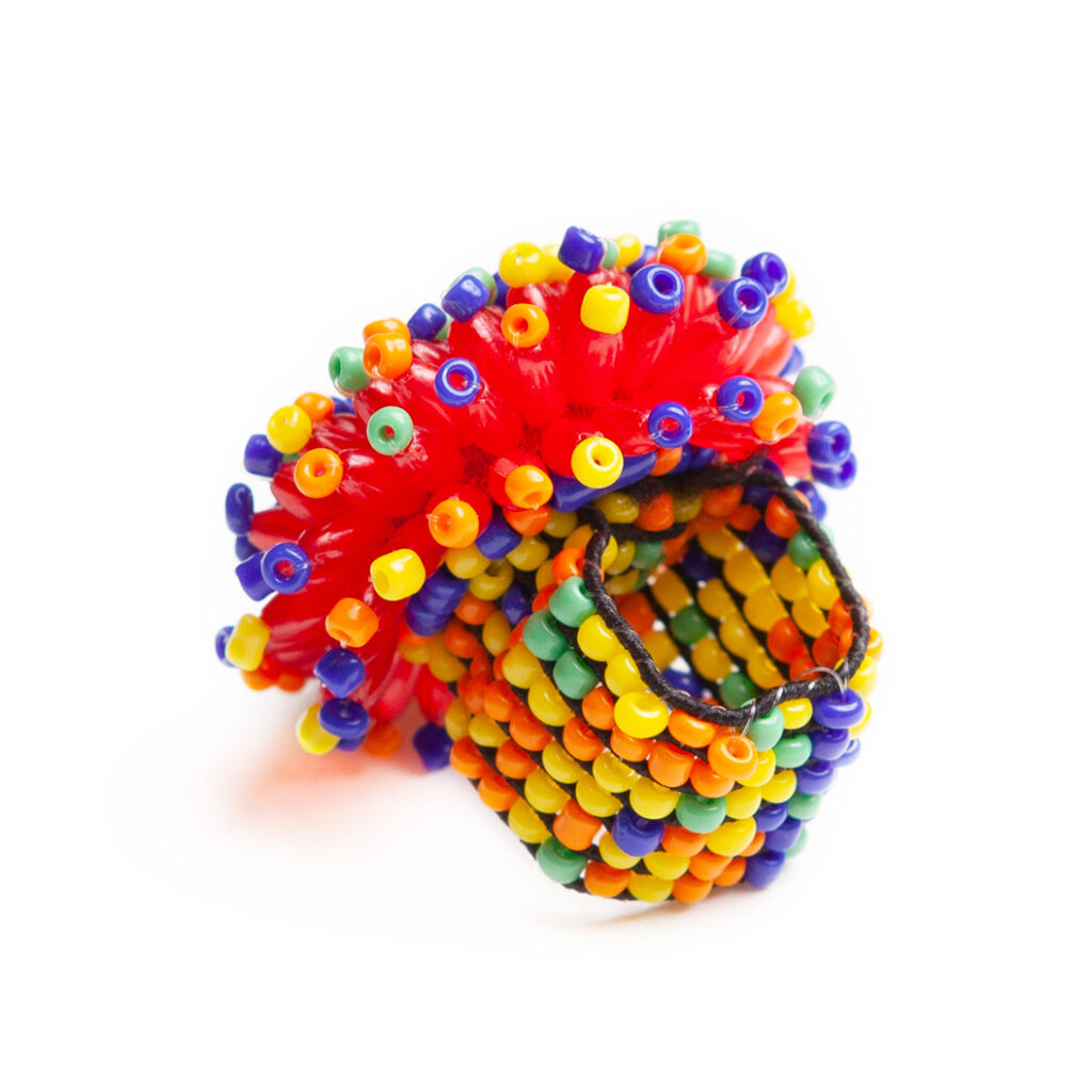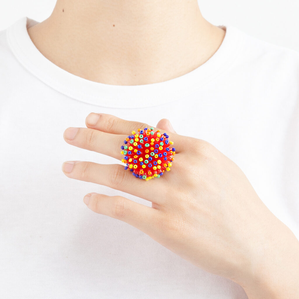 こちらの「NOVA RING RED MULTI」は、カラフルなビーズを先端に散りばめたカラーで、エネルギッシュかつポップで、身につけると内側からパワーが漲ってくるような、心が弾む配色です。