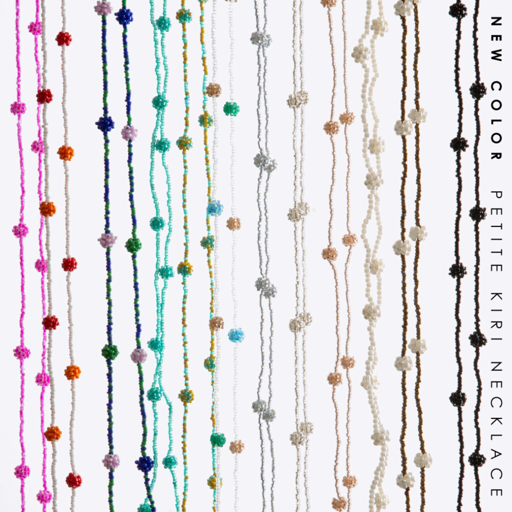 1連〜3連まで長さを変えて楽しめ、手首にぐるぐる巻いてブレスレットとしても使えるマルチユースなPETITE KIRI NECKLACEに、新たに人気の2色が加わりました。